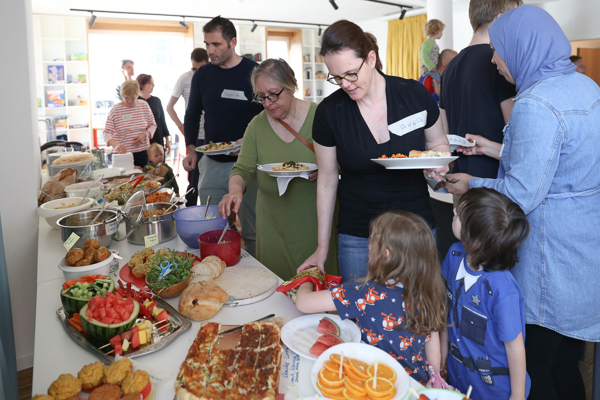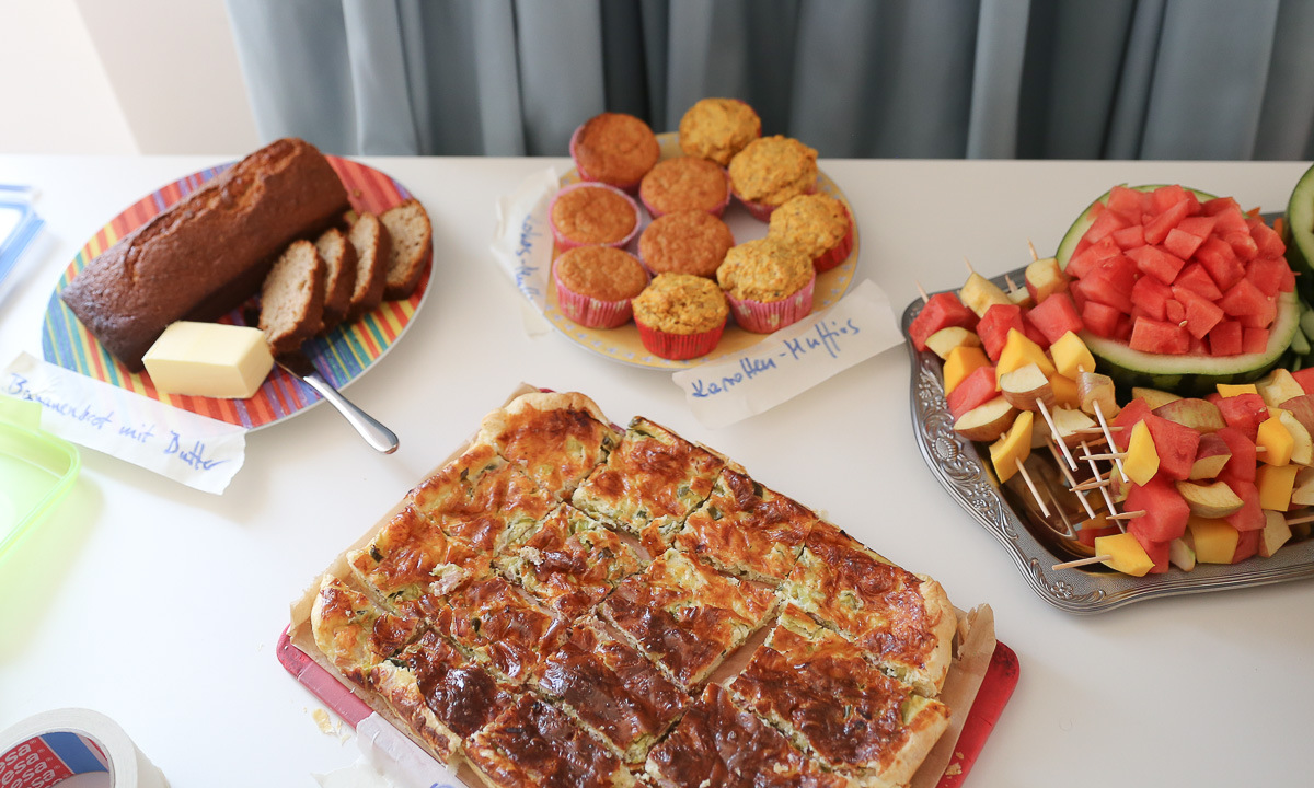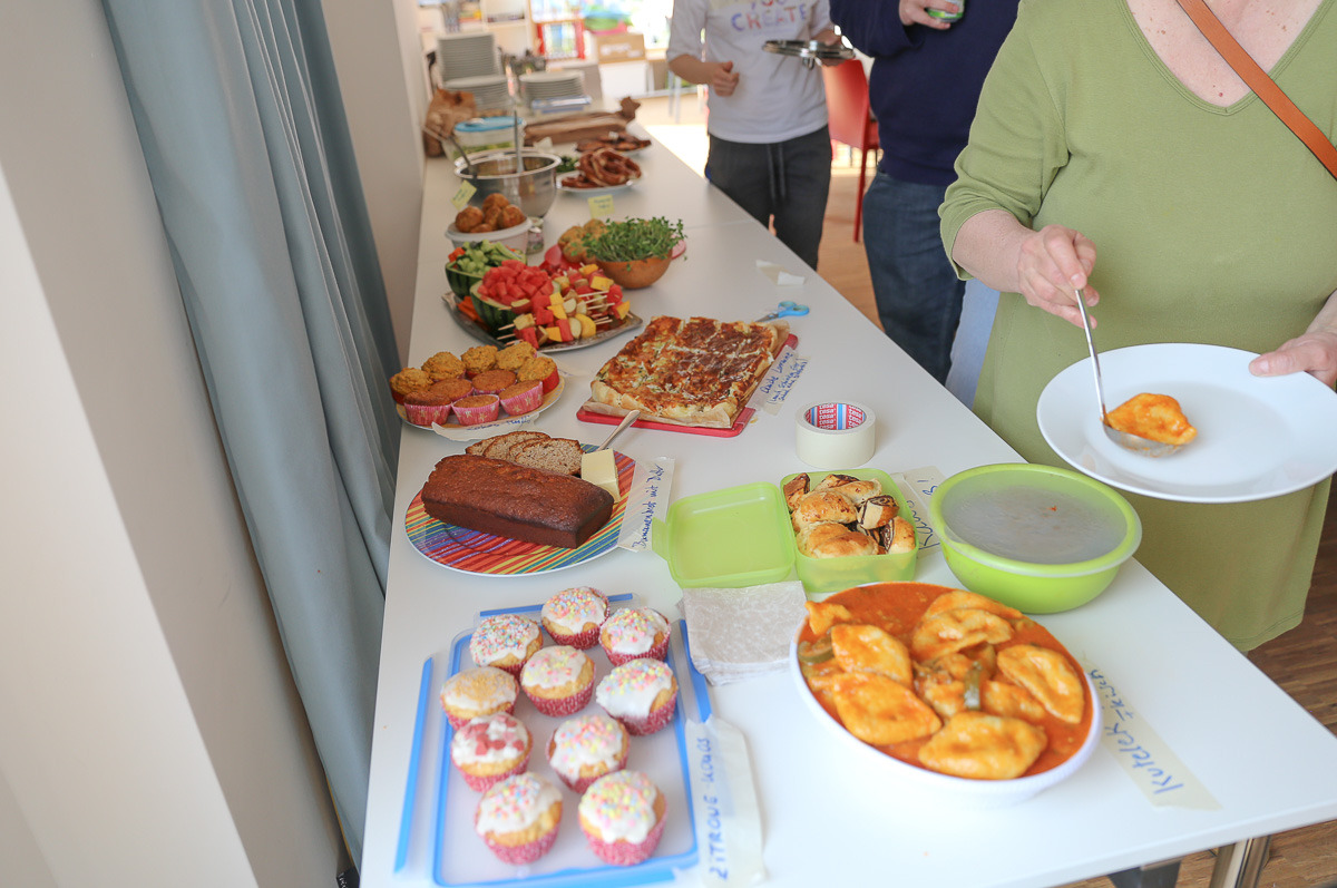 Und die Party danach war einfach toll: So viele unterschiedliche Gerichte türmten sich auf unserem langen Buffet! Und beim Nachholen waren die meisten Gerichte schon weg und durch neue ersetzt!